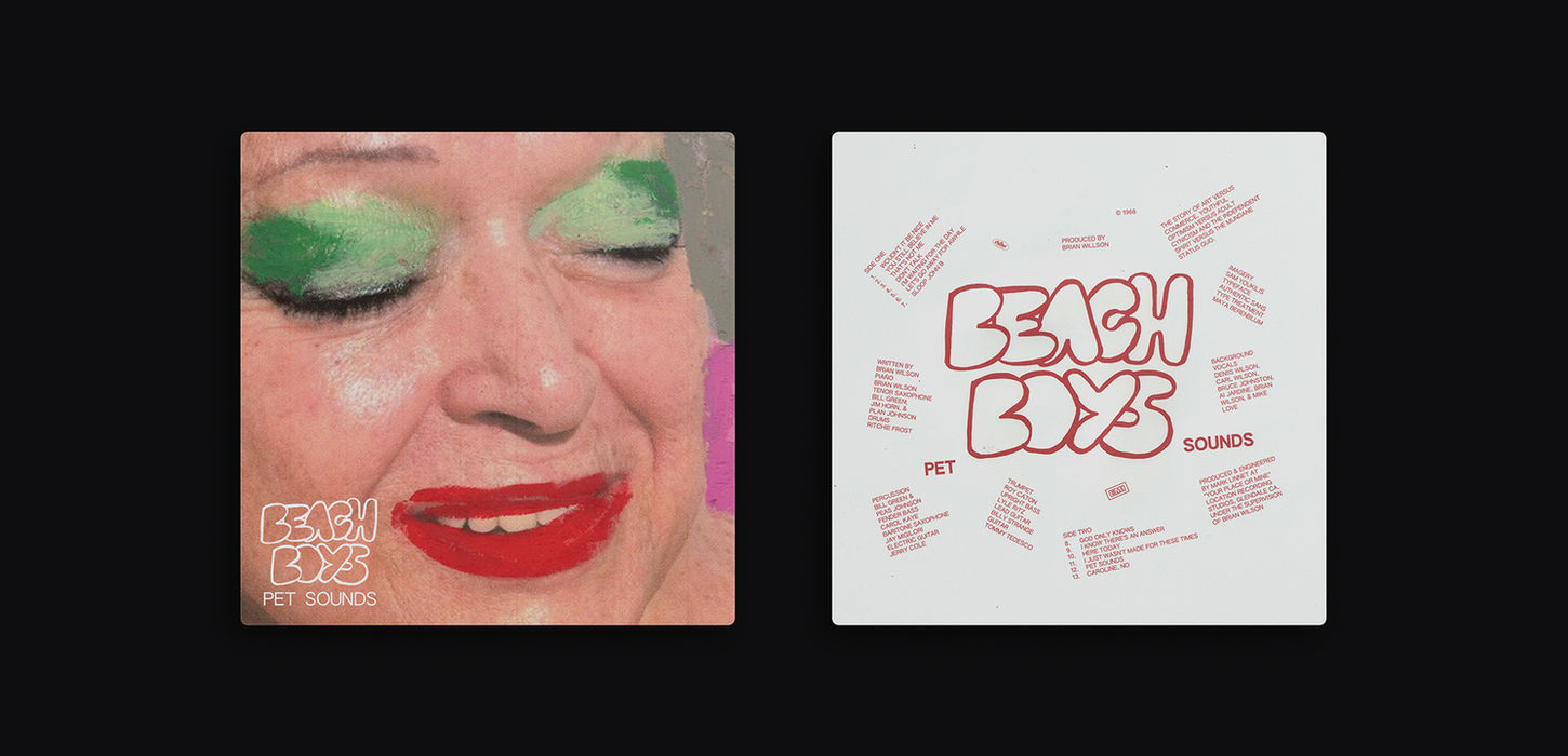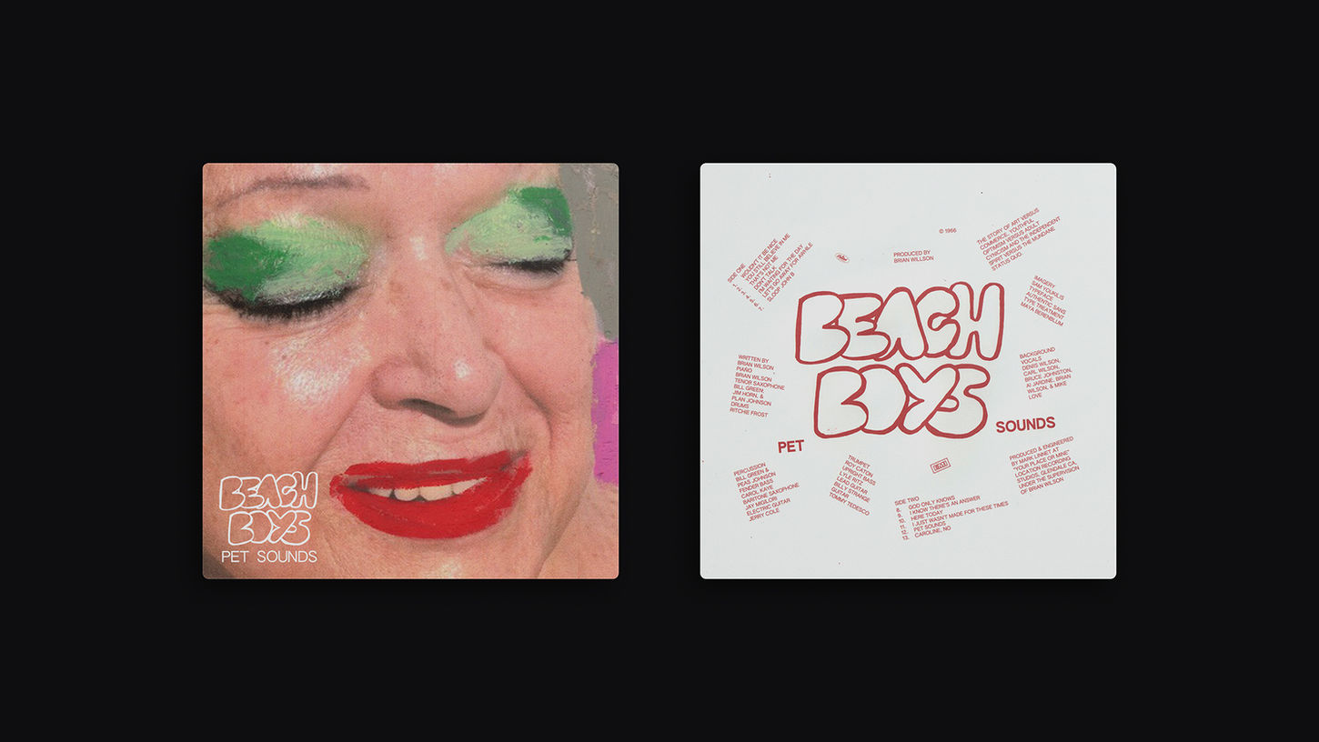 The project redesigns Beach Boys music album, Pet Sounds, from 1966, using a colorful and textural approach. Oil pastels are drawn over the photograph of Sam Youkilis emphasizes the youthful and coming of age theme from the album. Alongside, the bubble letters reinvent the retro band with present aesthetic.